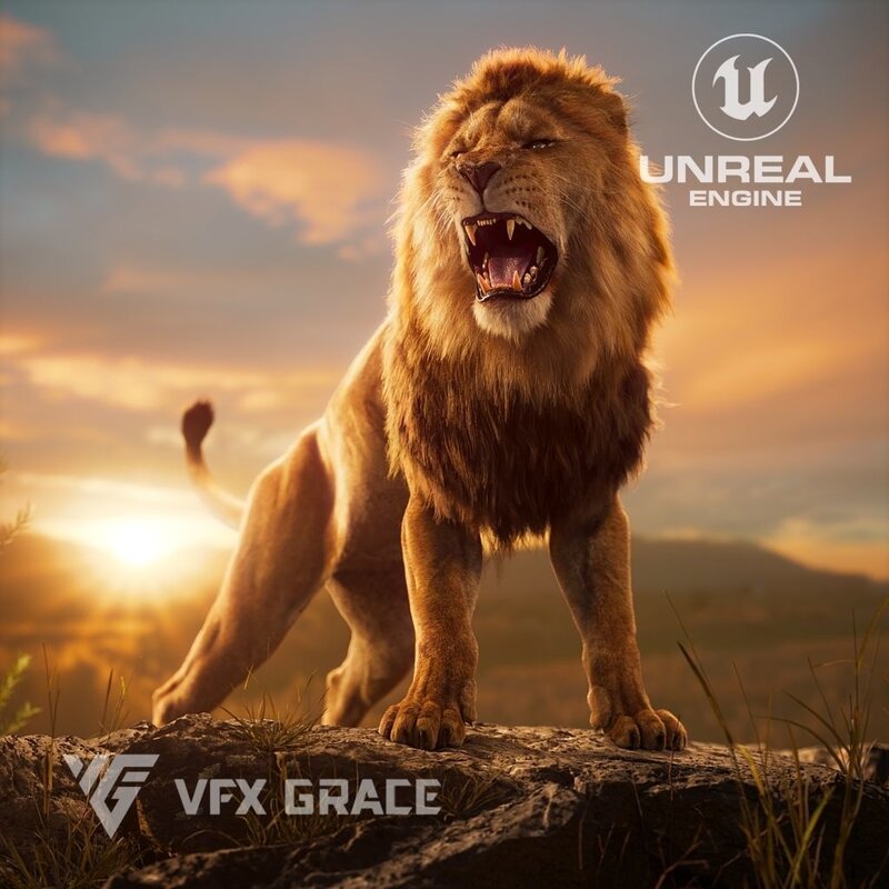 Groom Fur: Leveraging UE's Groom technology, the lion's fur styling has been authentically recreated with finely tuned materials.