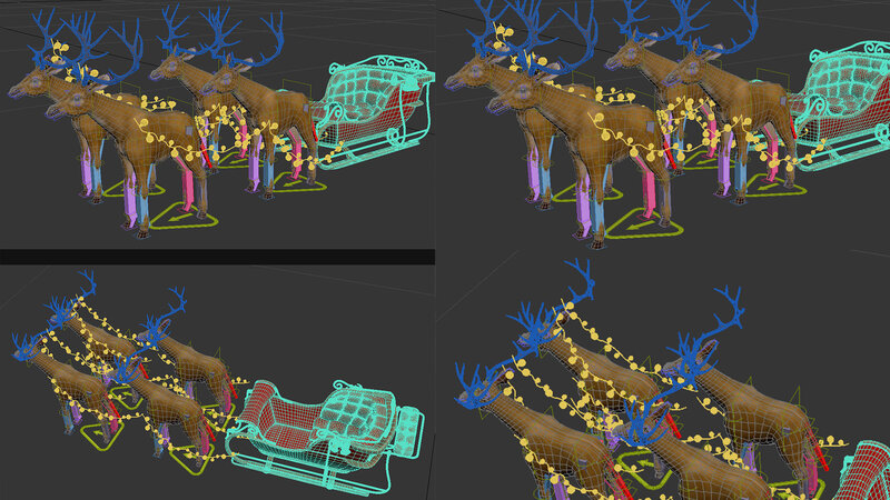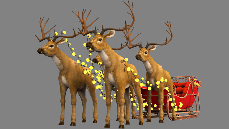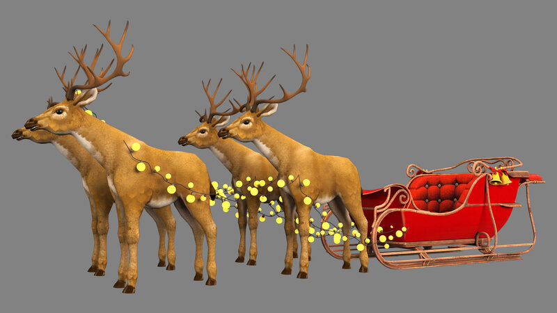 Santa deer and red sleigh