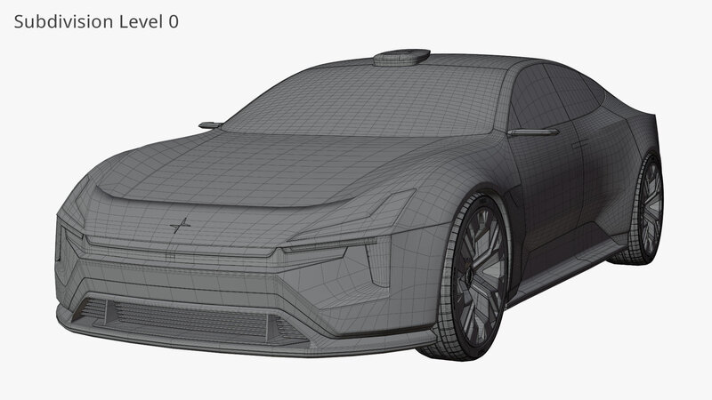 Description: A highly detailed exterior and simplified interior of Polestar's Precept concept car. The doors, bonnet, and trunk cannot be opened. Modeled in Blender using camera matched reference images and subdivision surfaces. Some exterior parts have had a level of subdivision applied and cut afterwards for better shading.
