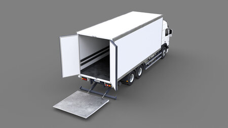 PBR low-poly 3D model of Medium Size Box Truck. The interior part is also modeled and textured but with much less detail.