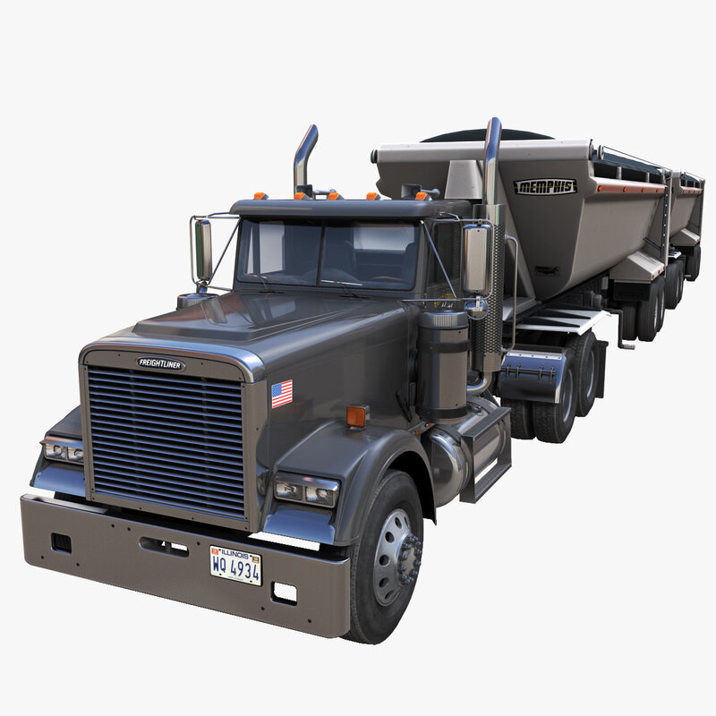 Freightliner Classic dump trailer Low-poly 3D model