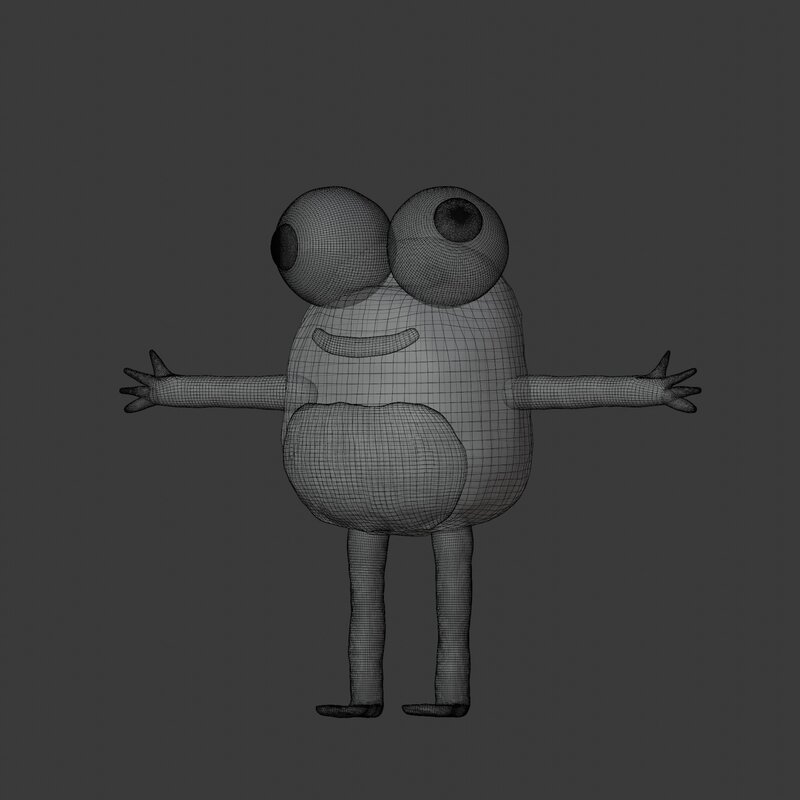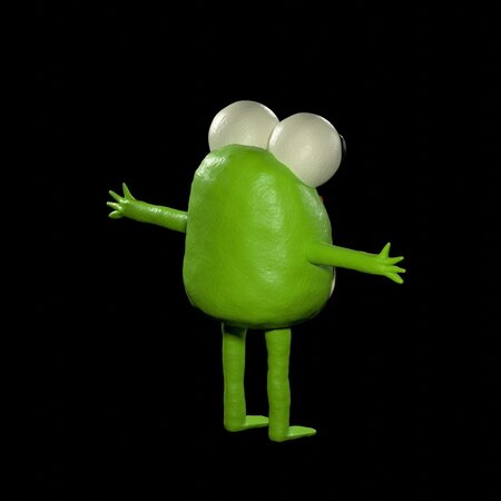 plasticine frog in t pose. Ready for games and renderings of toys. Has Normal , AO , Roughness texture make full in blender