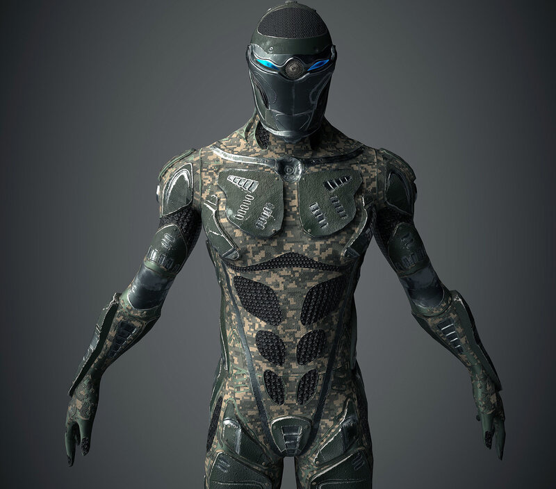 Qualitative low poly 3d model of Future Warrior with PBR textures. Good topology for Rigging and Animation! = Available formats: - Obj - Fbx -3ds Max 2017 LOWPOLY (Game resolution) -This Resolution is preferably for using Ingame. 30338 Polys 32591 Verts = -PBR Textures- 3 texture sets: Body: -Base color -Normal -Specular -Glossiness -Metallness -Roughness Resolution: 8192x8192 px Format: PNG Head: -Base color -Normal -Specular -Glossiness -Metallness -Roughness Resolution: 4096x4096 px Format: PNG Head Element (Wires etc.) -Base color -Normal -Metallness -Roughness Resolution: 4096x4096 px Format: TGA = Character was Rendered in Substance Painter with Iray Render. Render Scene not included! = Best regards from Zstuff! Click on me to see all my models!