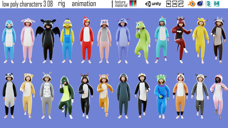 cartoon characters 3 08 Kigurumi Low-poly 3D model