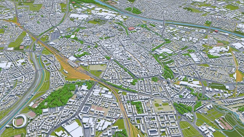 Augsburg City in Germany 30km Low-poly 3D model