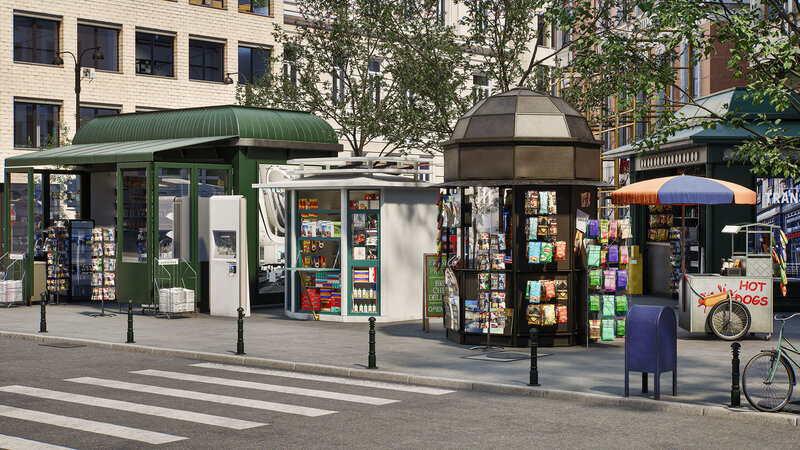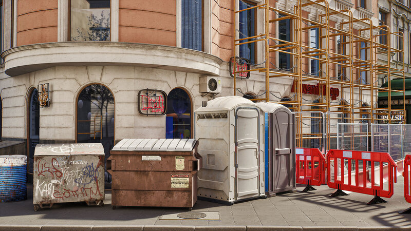 Archmodels for UE vol. 9 collection includes highly detailed 3d models for real-time architectural visualizations. This collection comes with 96 high quality street models like signs, litter bins, kiosks, press stands, advertising posts, railings and building elements, bus stops and much more. You can use them to enrich your scenes. All assets have textures and materials. Assets are optimized to use in Unreal Engine 5 and they are ready to use in your visualizations.