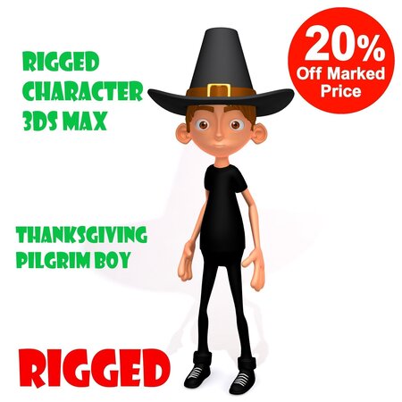 Thanksgiving Pilgrim boy is a high quality, photo real model that will enhance detail and realism to any of your rendering projects. The model has a fully textured, detailed design that allows for close-up renders, and was originally modeled in 3ds Max 2016 and rendered with Mental ray. This is a fully rigged biped for 3DSMax. It has been tested by several animators. It is a very fast rig . -NO RIGGING in MAYA Model is built to real-world scale Scene objects are organized by layers. No third-party renderer or plug-ins needed