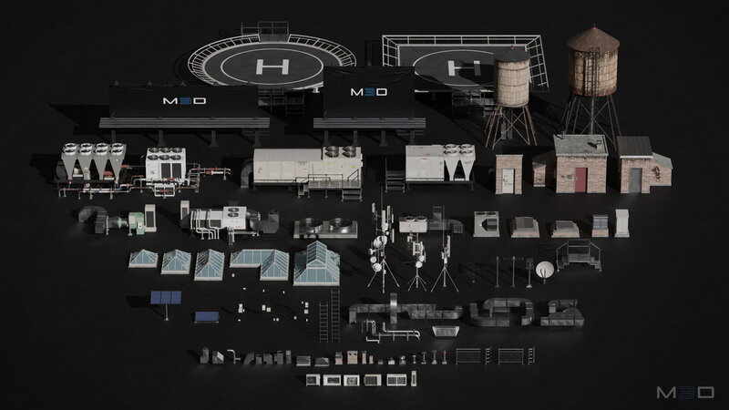 Rooftop Props Collection Low-poly 3D model