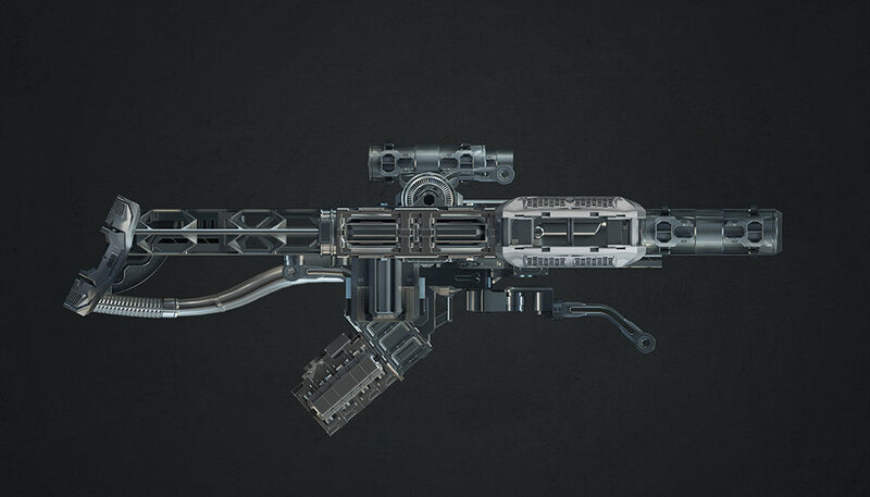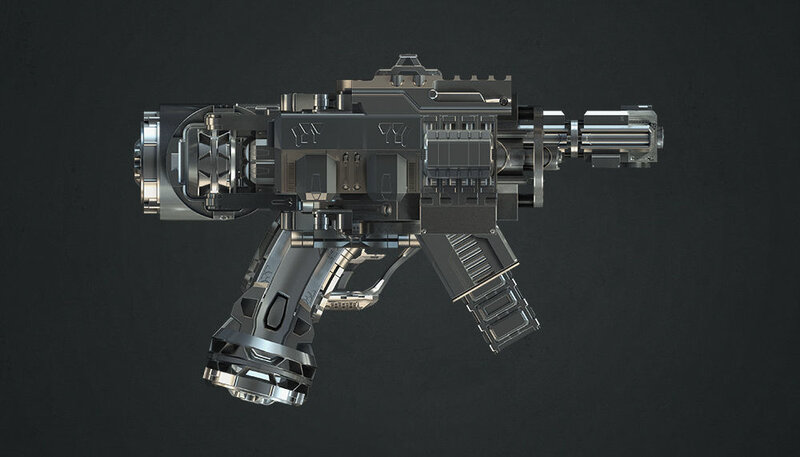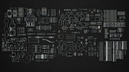Tech Heavy 2d Elements - This is a PSD file containing the 3d elements rendered at high resolution. You can use these like building bricks to quickly design industrial elements such as robots, weapons, equipment and so forth. Simple extract the desired elements, move them around, cut them up, transform them as you like into a desired configuration.