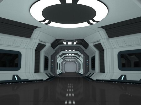 DESCRIPTION- This is a highly detailed and photo realistic 3D scene of a Spaceship Interior, complete with interlocking blast doors, command room and common area. The design is modular, so each section can be duplicated or reduced to create a scene to suit your needs.