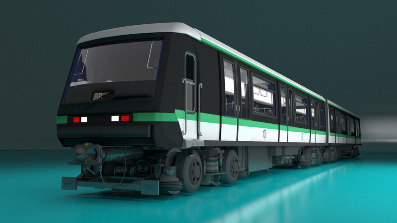 Detailed model of a Paris Subway's train, a MP-89CC train, with a driver's cab and interior, it includes two wagons, one of them with a driver's cab so you can add as many wagons as you like, mobile parts are modeled separately.
