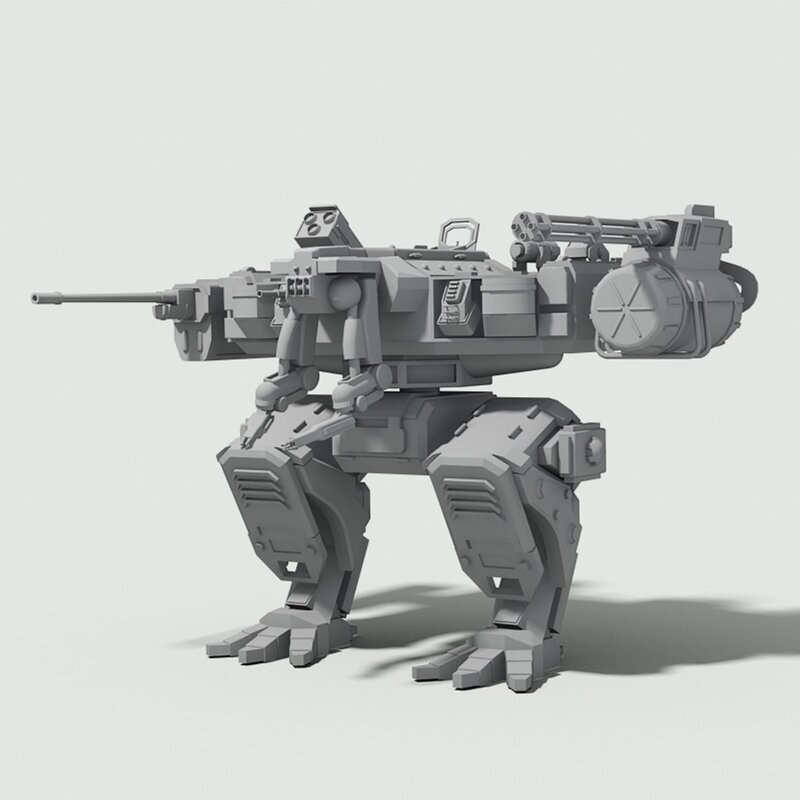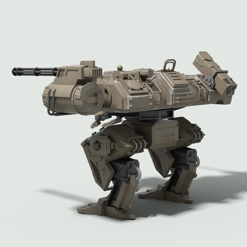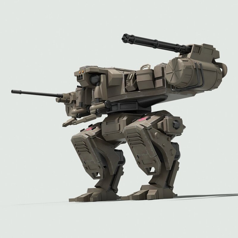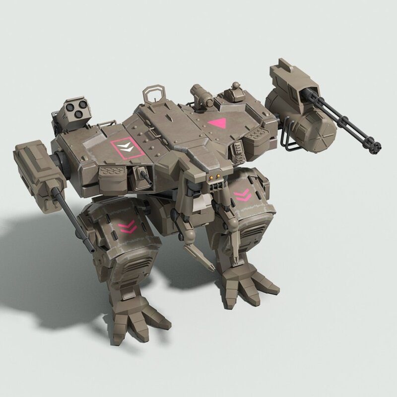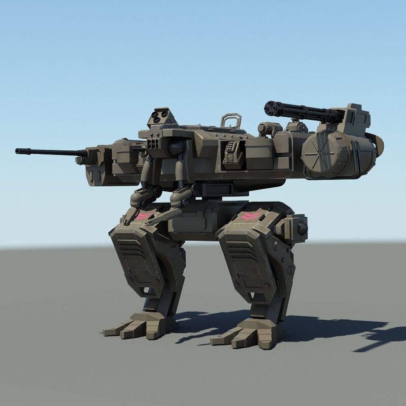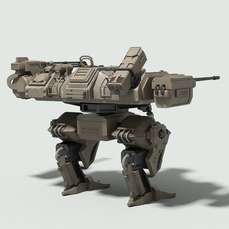 Detailed 3D model of a futuristic military fighter robot.