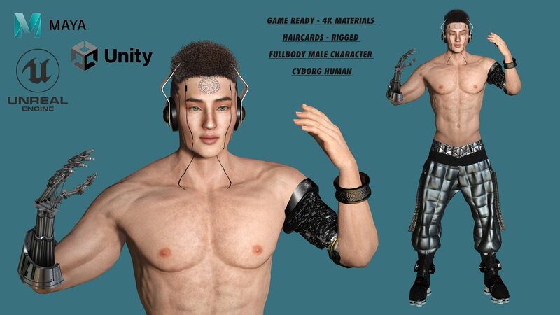 High-quality AAA game-ready 3D Male Character - Cyborg Human