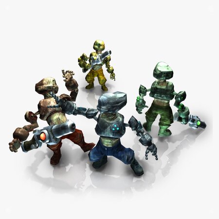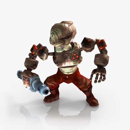 The Poly count for this model is 4366 tris including laser rifle. The character mesh and laser rifle are separate to allow the use of different weapon types.