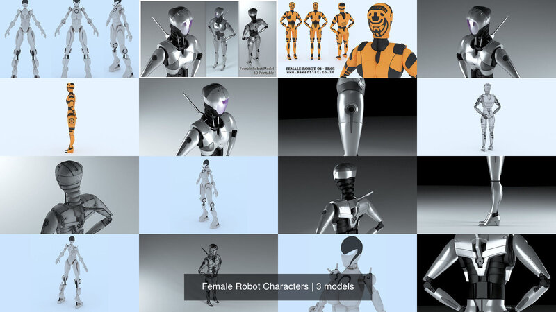 Female Robot Characters 3D Model Collection