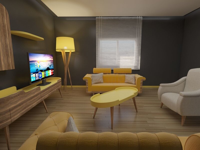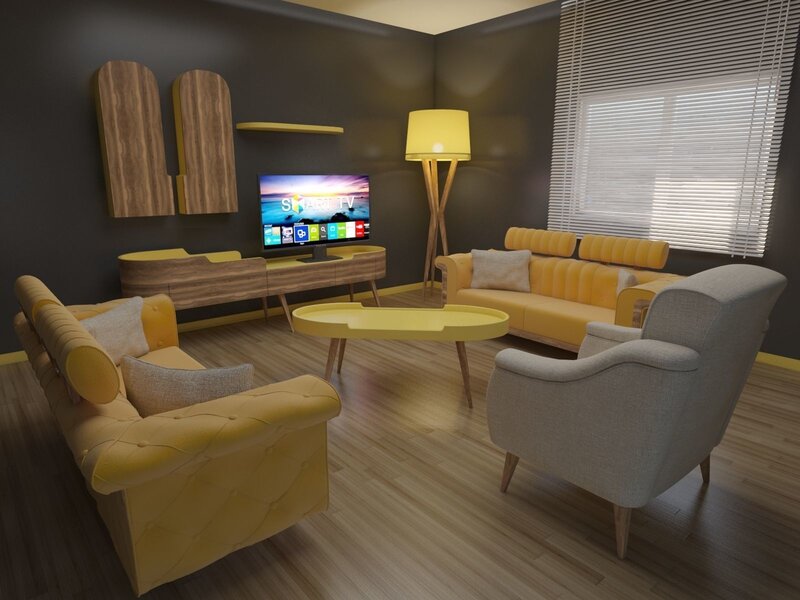 Vintage salon. Room contains, furniture, sofa, tv unit etc.